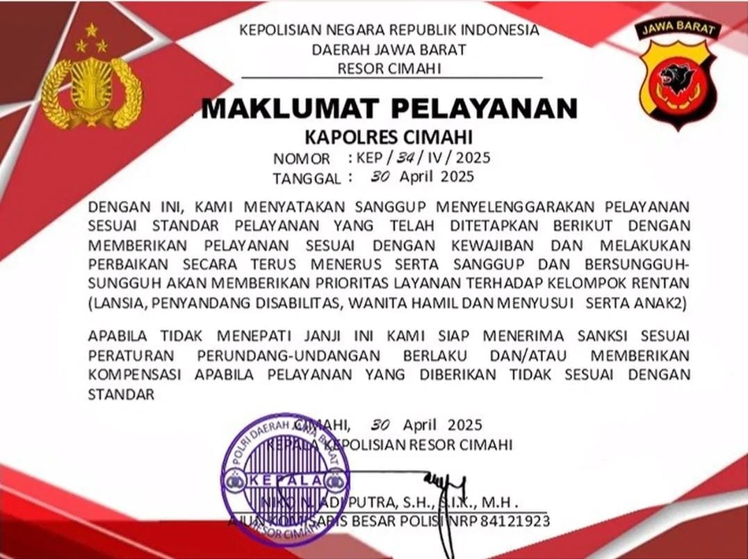 Polres Cimahi siap memberikan informasi kepolisian dan menerima pengaduan masyarakat 1x24 jam. Hubungi kami: